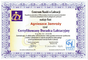 Mamma-Med, Agnieszka Jamroży Położna, Certyfikowany Doradca Laktacyjny Nr rej. CNoL 532/2016/CDL